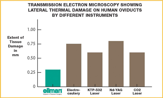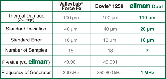 與大多數激光相比較,ellman?射頻技術僅產生他們1/2到1/3的側向熱損傷
