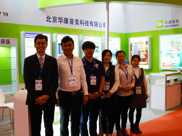 北京大學第一醫院皮膚科副教授、中國醫師協會皮膚科分會副總干事、皮膚外科亞專業主任委員--李航博士(中)親臨第十一屆國際美容皮膚科學大會我公司展位