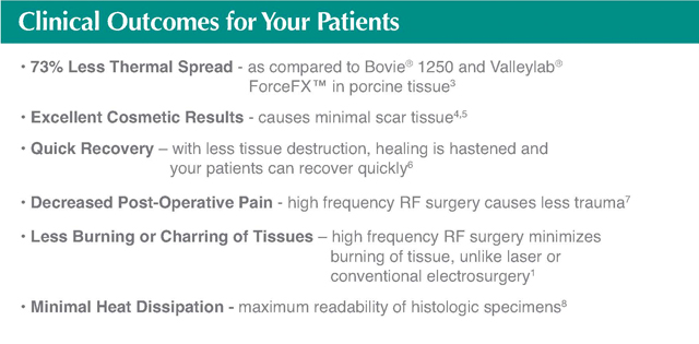 5、無炭化-射頻手術設備更小化燒傷組織,不像激光及傳統(tǒng)電外科設備。