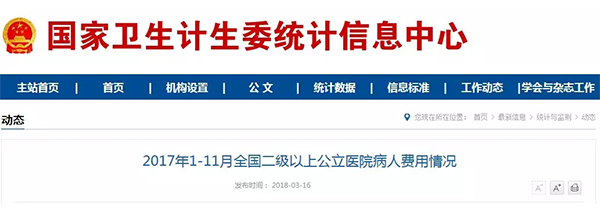 3月16日,國家衛計委發布2017年1-11月的全國二級以上公立醫院病人費用情況、全國醫療服務情況、全國醫療衛生機構數。