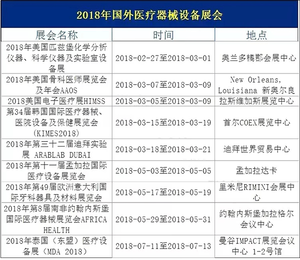 珍藏!2018年全球醫療器械相關展會匯總(國內33場、國外9場)!!