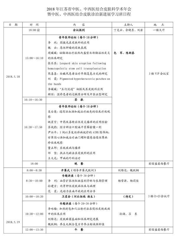 2018年江蘇省中醫、中西醫結合皮膚科學術年會