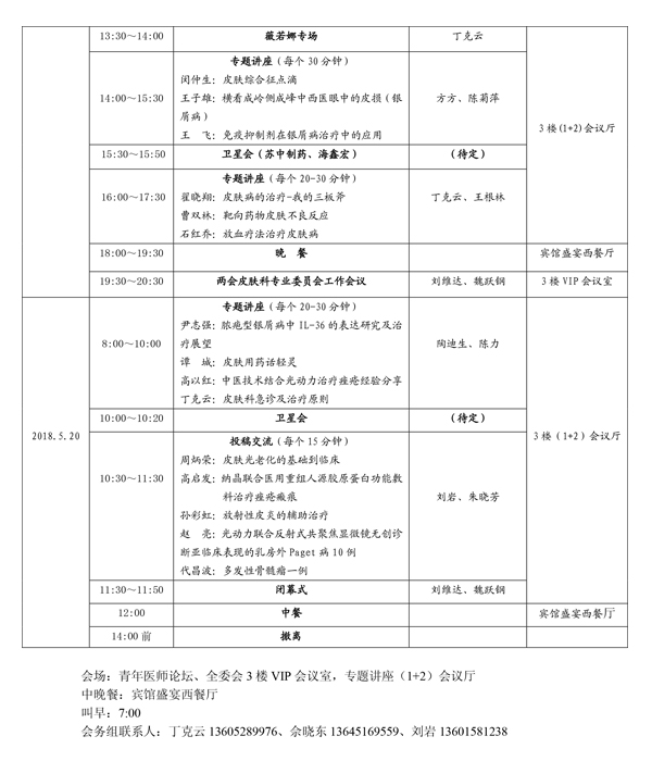 5月18日19∶30~21∶00 省中醫、中西醫結合學會皮膚科專業委員會工作會議。請全體委員準時出席,若遇特殊情況,須履行請假手續。