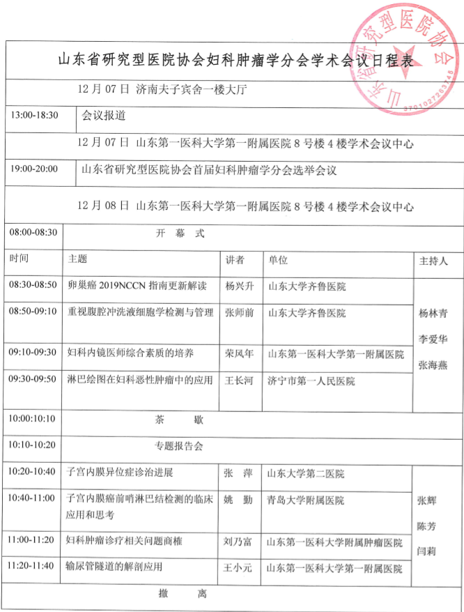 2019年12月07日19:00山東省研究型醫院協會婦科腫瘤學分會選舉會議