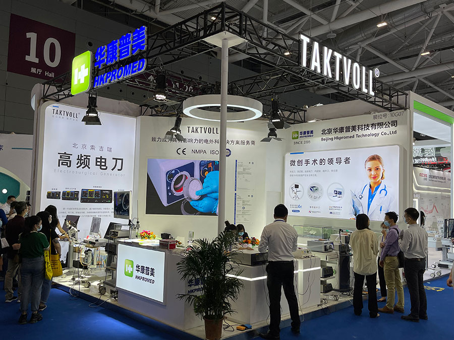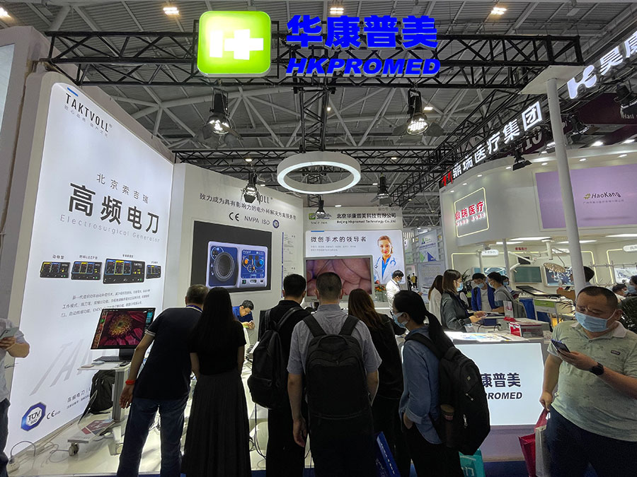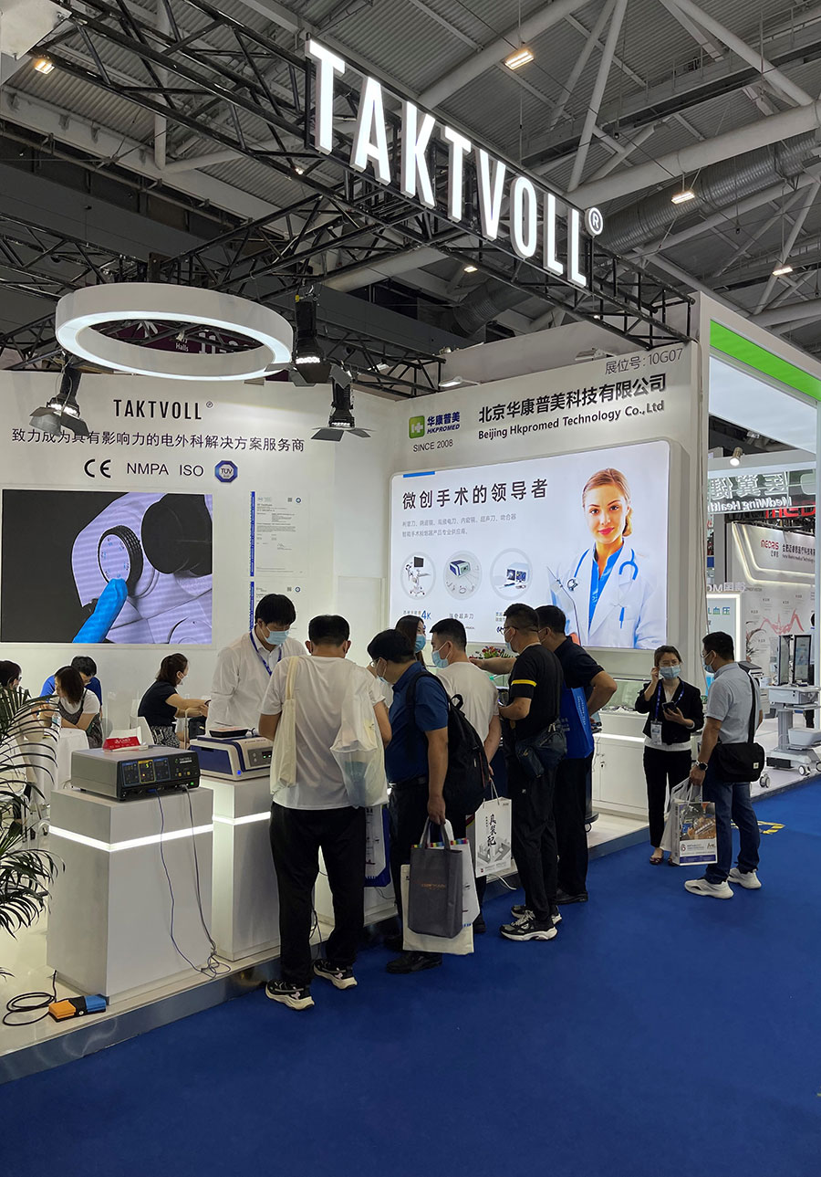 此次,華康普美攜自主研發(fā)品牌TAKTVOLL高頻電刀及利普刀,高清陰道鏡系列及吸煙器等產(chǎn)品亮相本次展會,吸引了大量的觀眾駐足咨詢……
