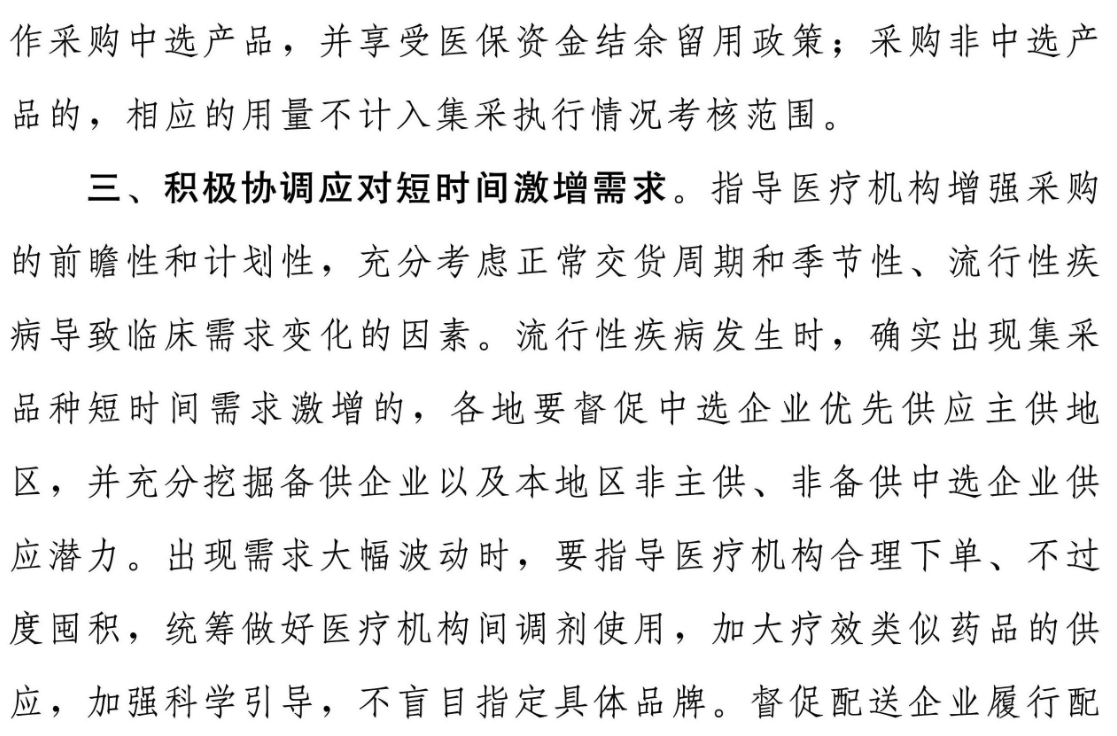 此外,因供應問題采購非中選產品的,在集采執行考核時將會差異化調節。