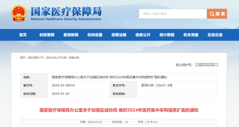 今天(5月20日)下午,國家醫保局發布重磅文件《國家醫療保障局辦公室關于加強區域協同做好2024年醫藥集中采購提質擴面的通知》(全文附文末),2024年耗材集采全面升級,新任務正式揭曉。