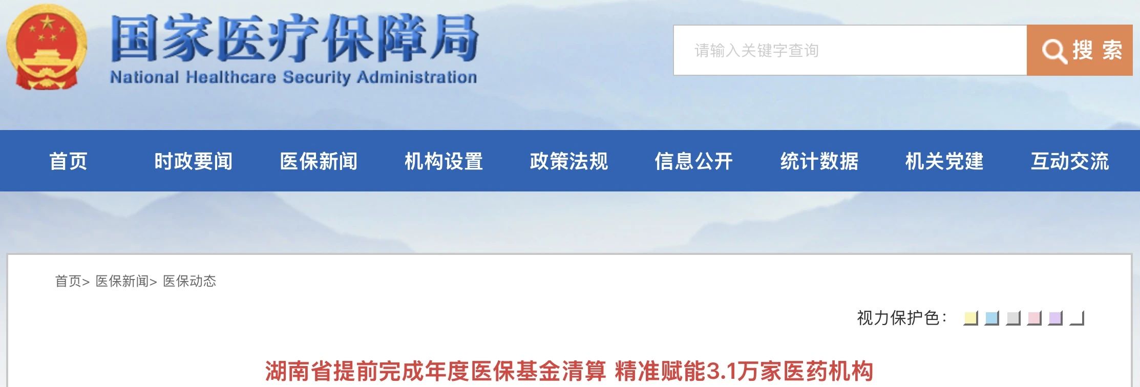 今日(6月11日),國(guó)家醫(yī)保局發(fā)布《湖南省提前完成年度醫(yī)保基金清算 精準(zhǔn)賦能3.1萬家醫(yī)藥機(jī)構(gòu)》。