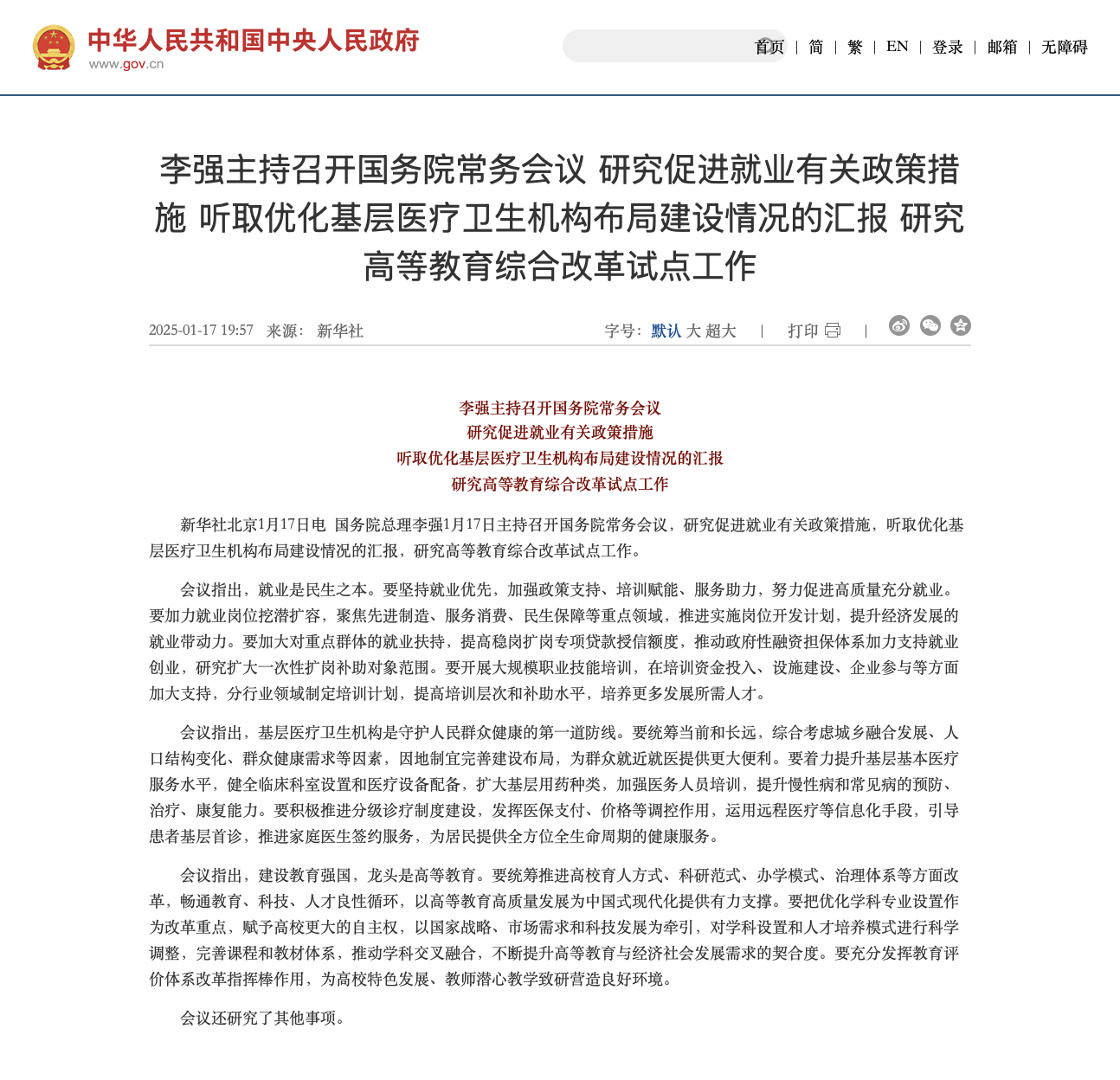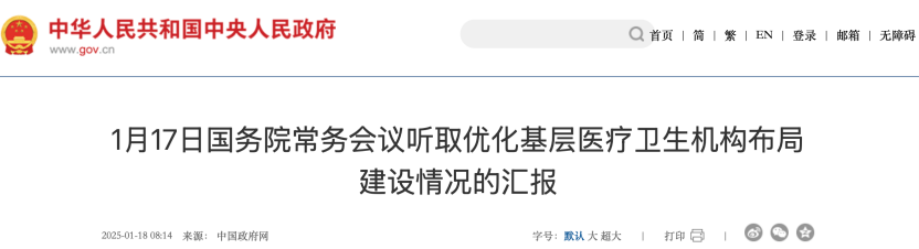 1月17日,國務院常務會議聽取優化基層醫療衛生機構布局建設情況的匯報。