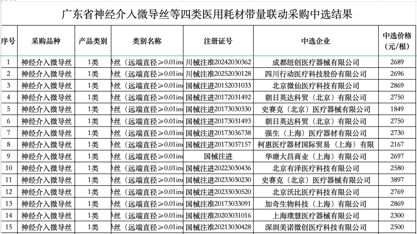 12月31日,深圳公共資源交易中心正式公布了廣東省神經介入微導絲等四類醫用耗材帶量聯動采購中選結果。