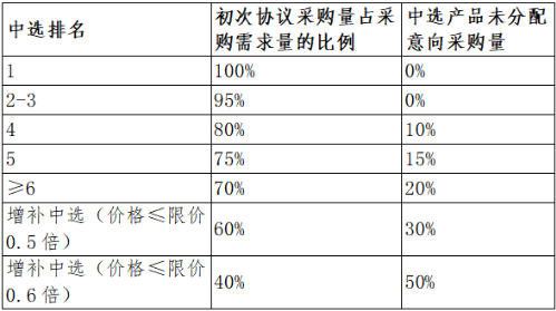 第二步:未中選企業(yè)的意向采購量的90%和中選產(chǎn)品未分配意向采購量,作為醫(yī)療機(jī)構(gòu)的二次協(xié)議采購量。