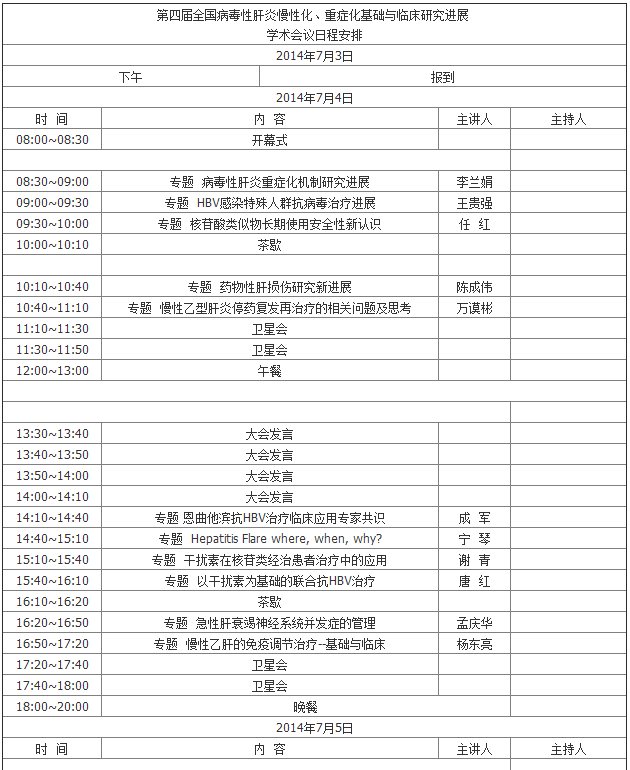 會議將設專題報告、大會發(fā)言和書面交流三種形式,特別邀請國內(nèi)感染病學和肝病學等領域的知名專家,就有關專題進行交流。為了避免專題報告過多重復使用過去衛(wèi)星會的幻燈及內(nèi)容,致使有關新進展反映不多,本次大會將嚴格要求講者的講稿及幻燈片避免重復,力求反映最新研究進展及成果。