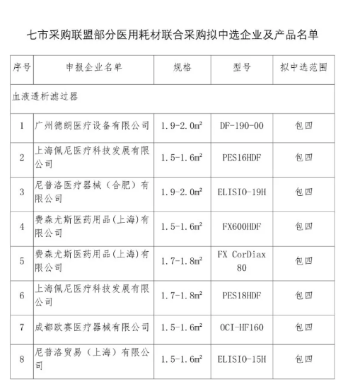 按照七市聯(lián)盟的要求,本次帶量采購后,七市所有開展骨科創(chuàng)傷和血液透析業(yè)務(wù)的二級及以上公立醫(yī)療機(jī)構(gòu)將全部使用中標(biāo)產(chǎn)品。