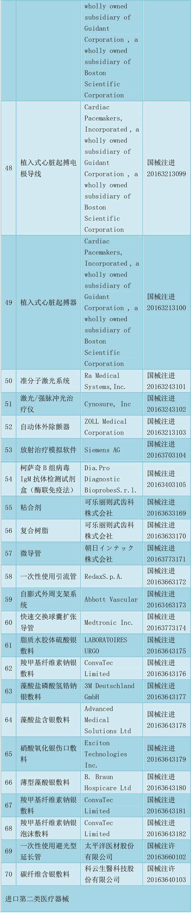 2016年11月批準注冊醫療器械產品目錄