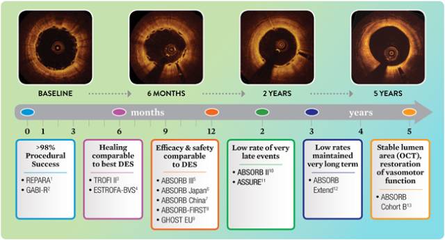 在臨床試驗中,Absorb展現了良好的預后效果。“醫生和病人都很喜歡這個支架,”本次臨床試驗的負責人,哥倫比亞大學醫學中心的Gregg Stone博士說:“它能被徹底吸收,不留下任何東西。非金屬的結構意味著冠狀動脈能夠以自然的方式出現搏動與舒展。此外它也能減少血管在未來再次堵塞的風險,并讓其他治療方案更容易開展。”