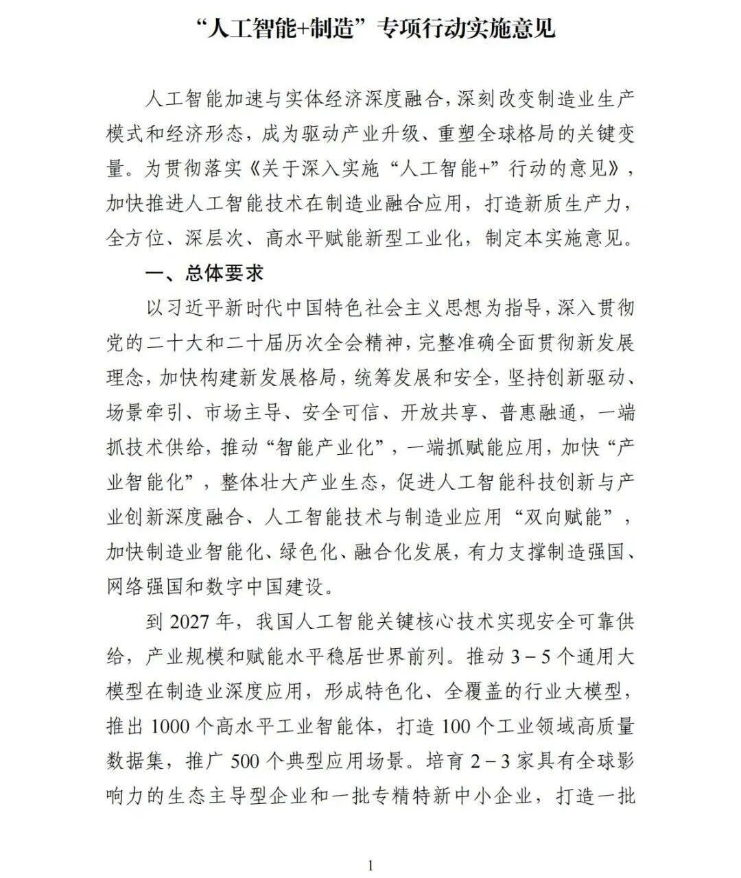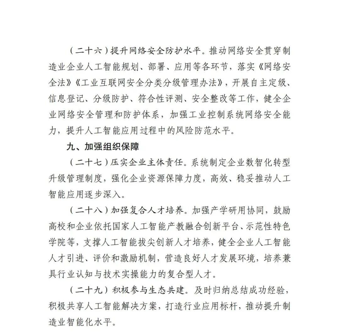 近日,工信部等八部門印發《“人工智能+制造”專項行動實施意見》(簡稱《實施意見》,完整見文末)。