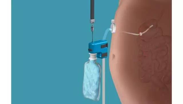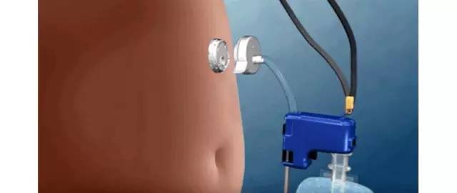 在AspireAssist的使用過程中,會有一條導管經腹部插入患者胃里,它通過一個“端口閥”進入,端口閥位于患者肚臍的正上方,患者可以打開、關閉閥門來排出胃里的食物。用餐后20至30分鐘,病人才能將泵與閥門連接起來,胃中的食糜就可以被導出并且直接排進廁所廁所,此過程大約耗時10分鐘。