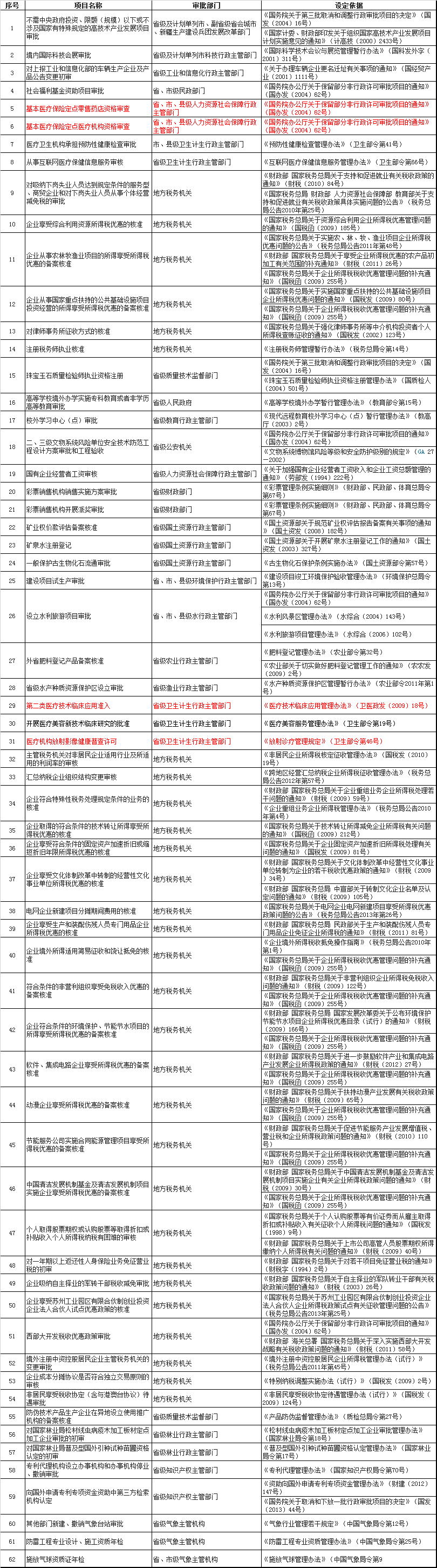 國務院取消的62項中央指定地方實施的行政審批事項目錄(第一批)