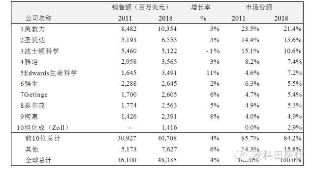 由于通用電氣和飛利浦不公布其心血管領(lǐng)域的銷售數(shù)據(jù),所以沒有將他們考慮進去。