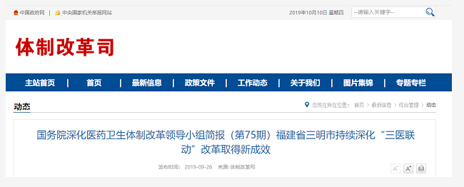 三明模式的主要特點與國家目前推動醫改方向十分的契合,因此國家更加大力的推進各地復制三明醫改經驗。