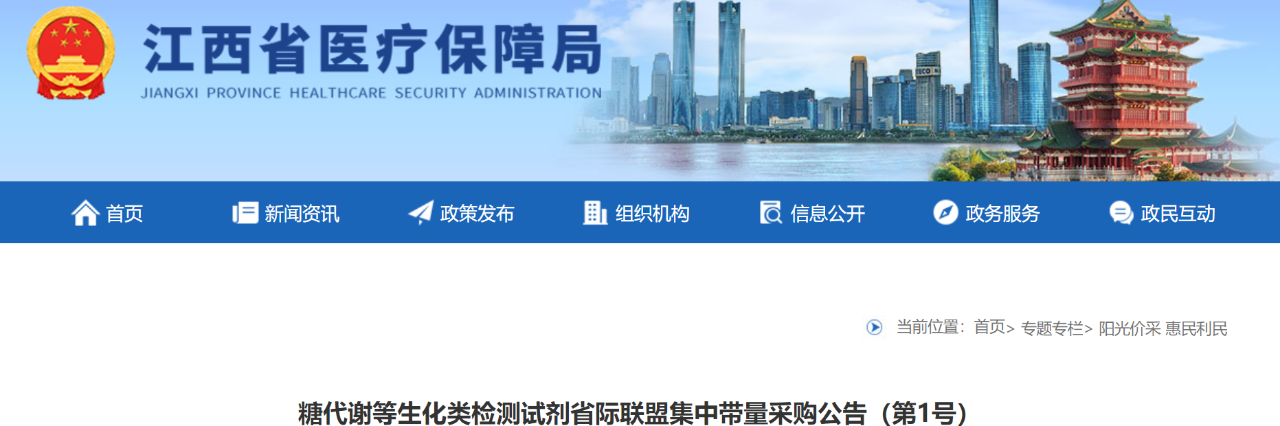 11月4日,江西醫(yī)保局發(fā)布《糖代謝等生化類檢測(cè)試劑省際聯(lián)盟集中帶量采購公告(第1號(hào))》,公布了正式采購文件和首年采購需求量(完整見文末)。