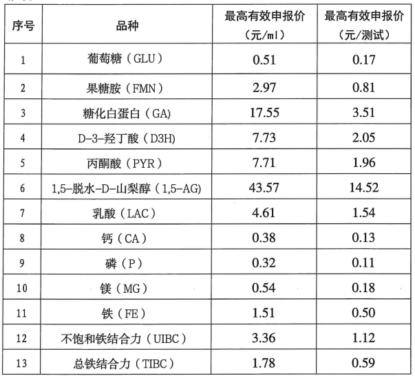 該集采為國家醫(yī)保局重點(diǎn)指導(dǎo)的全國聯(lián)采項(xiàng)目,聯(lián)盟成員包括江西在內(nèi)的27省,采購品種包括糖代謝、離子微量元素、血脂和脂蛋白、肝功類、胰腺類、腎功類6個(gè)類別35個(gè)品種,相應(yīng)的最低申報(bào)價(jià)也正式公布,具體如下:
