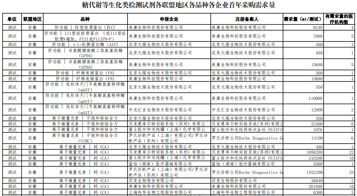 通過梳理此次公告中披露的“各地各品種各企業(yè)首年采購需求量明細(xì)“可見,邁瑞生物、安圖生物、中元匯吉生物、九強(qiáng)生物、邁克生物、美康生物、新產(chǎn)業(yè)、沃文特生物等本土企業(yè)在各個(gè)品種均獲得高額需求量占比,這預(yù)示著本輪集采的競價(jià)將較為激烈,最終的降幅或比較可觀。