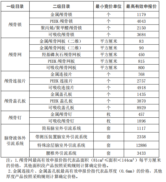 神經外科集采品種:顱骨鎖、顱骨網、顱骨連接片、顱骨蓋孔板、顱骨釘、固定壓腦室腹腔分流系統、可調壓腦室腹腔分流系統、固定壓腰骶腹腔分流系統、可調壓腰骶腹腔分流系統、簡易腦室外引流系統、帶測壓裝置系統腦室外引流系統、腰椎外引流系統、動脈瘤夾。