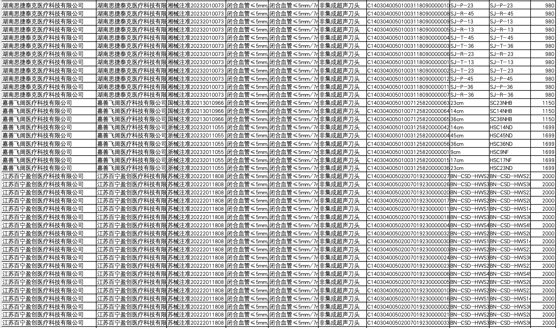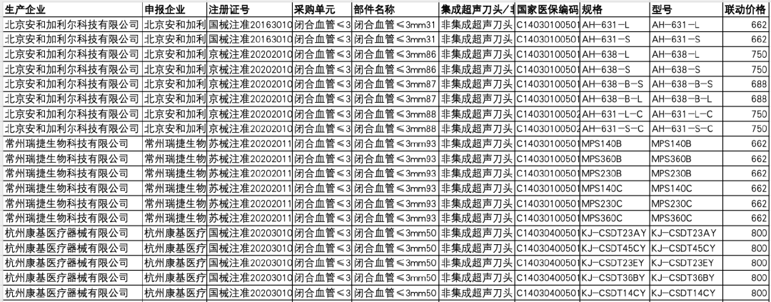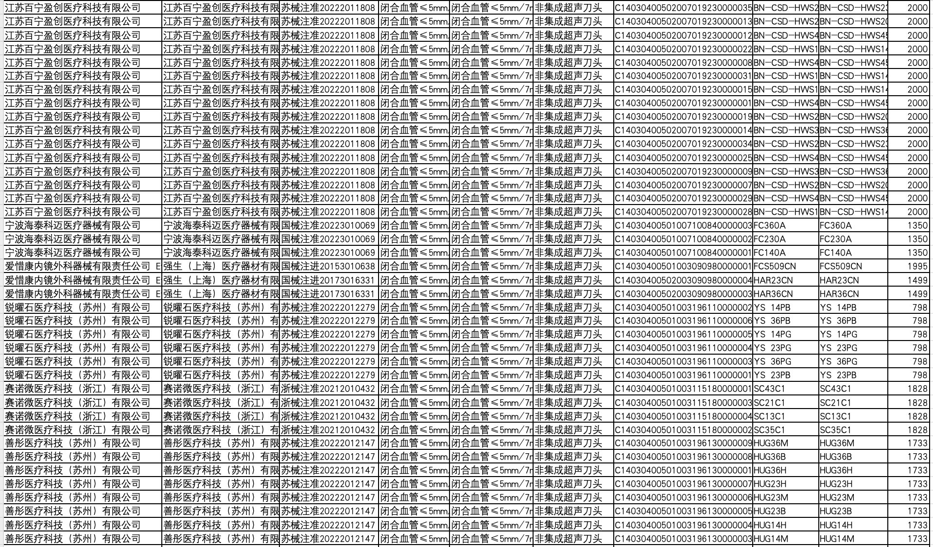 在低價聯動模式下,超聲刀頭全國價格進一步下調、拉齊。