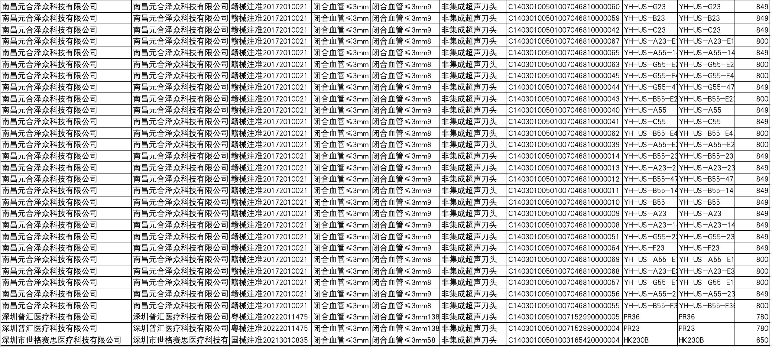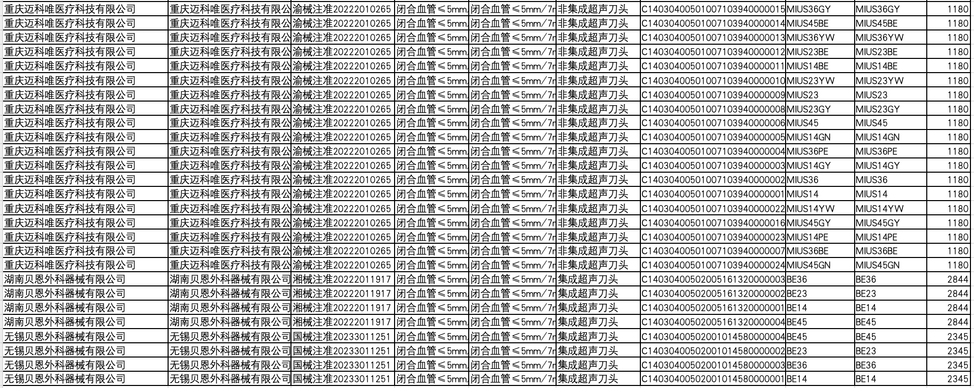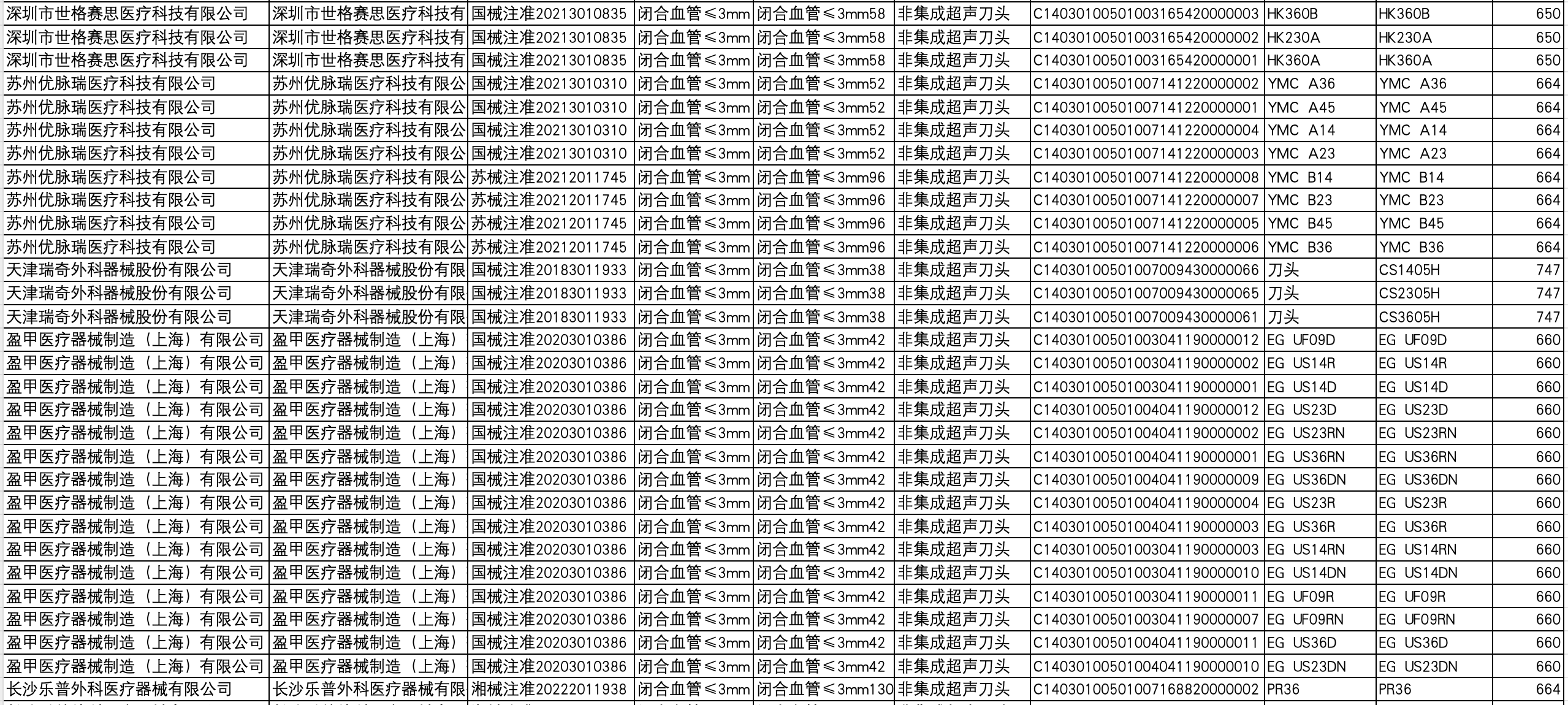 公示內容顯示,閉合血管≤3mm的超聲刀頭最低價已降至536元,閉合血管≤5mm/7mm的超聲刀頭最低價降至720元。