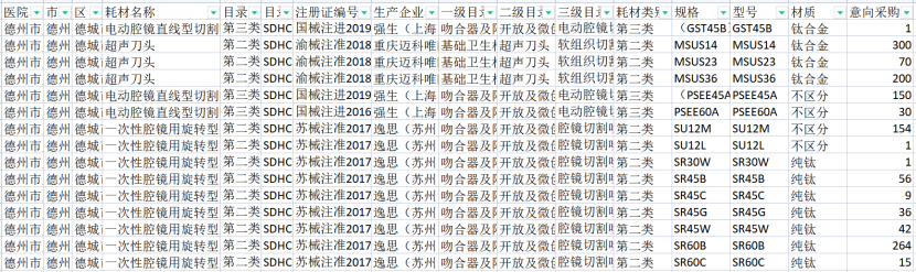 根據《征求意見稿》,山東省第三批醫用耗材集中帶量采購品類為超聲刀頭和腔鏡切割吻/縫合器及釘倉(釘匣)。
