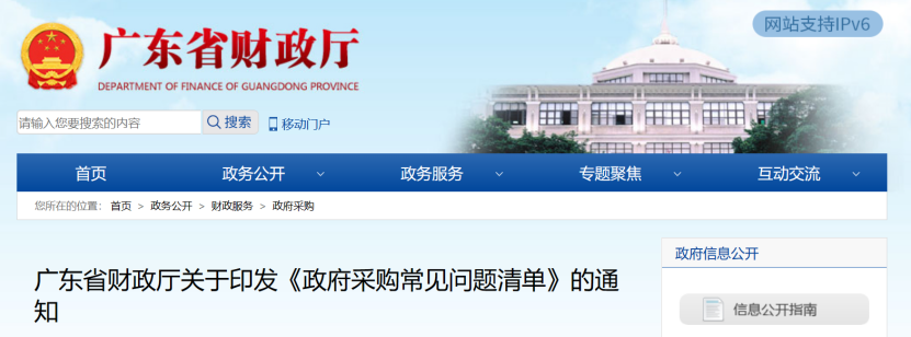 近日,廣東財政廳發(fā)布《政府采購常見問題清單》,供各級政府采購監(jiān)管部門及各政府采購當事人對照參考,進一步規(guī)范政府采購行為,保障政府采購活動的公平公正。