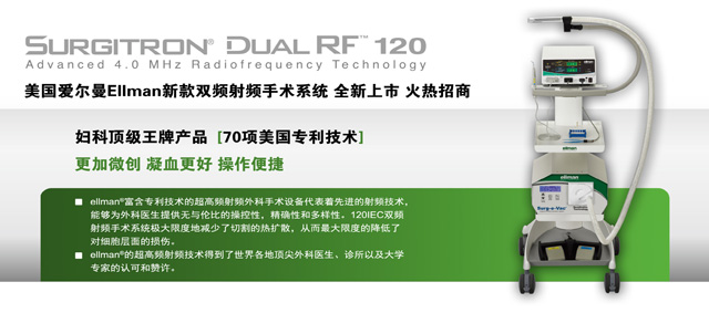 美國愛爾曼全新Ellman Surgitron Dual 120專注于婦科的應用,能夠在所有組織,包括薄壁組織,交融組織或者無張力組織中,像手術(shù)刀一樣操作進行無壓力切割,能夠?qū)崿F(xiàn)操作多樣化、精確化;攜帶方便、免維護。顯著優(yōu)勢:全數(shù)字射頻能量調(diào)節(jié)更加精準;全球最先進的雙射頻頻率輸出:4.0Mhz/1.7Mhz切割更加微創(chuàng),凝血效果更加強勁;使用多功能操作手柄操作更加方便讓醫(yī)生得心應手。