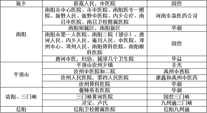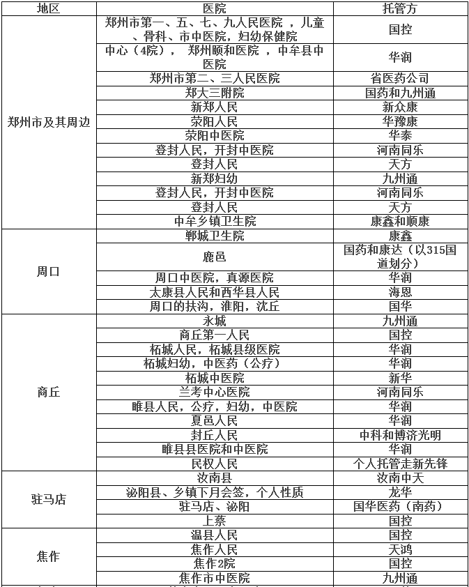 事實(shí)上,九州通、華潤醫(yī)藥、國藥等藥事巨頭近年來高歌猛進(jìn)的藥房托管已經(jīng)為今天的耗材集采和托管服務(wù)埋下了深厚的伏筆——本質(zhì)是大規(guī)模并購后的醫(yī)藥物流服務(wù)延伸入院的頂層利益格局的滲透。下面是河南省在2015年的藥事(含部分耗材)供應(yīng)托管統(tǒng)計(jì)表,有興趣的同仁可以深度了解一下: