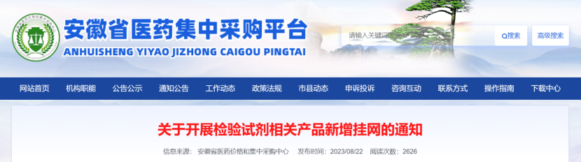 根據(jù)《通知》,為做好集中帶量采購(gòu)工作,不斷完善安徽省醫(yī)藥集中采購(gòu)平臺(tái)檢驗(yàn)試劑產(chǎn)品數(shù)據(jù)庫(kù),開展臨床檢驗(yàn)試劑相關(guān)產(chǎn)品新增掛網(wǎng)工作。