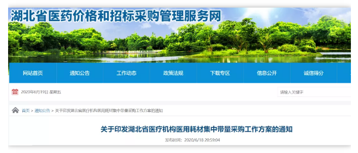6月18日,湖北省醫藥價格和招標采購管理服務網發布《湖北省醫療機構醫用耗材集中帶量采購工作方案》(下稱《工作方案》)顯示,將在全省范圍開展耗材集中帶量采購,實施范圍包括湖北全省,縣級及縣級以上公立醫療機構。