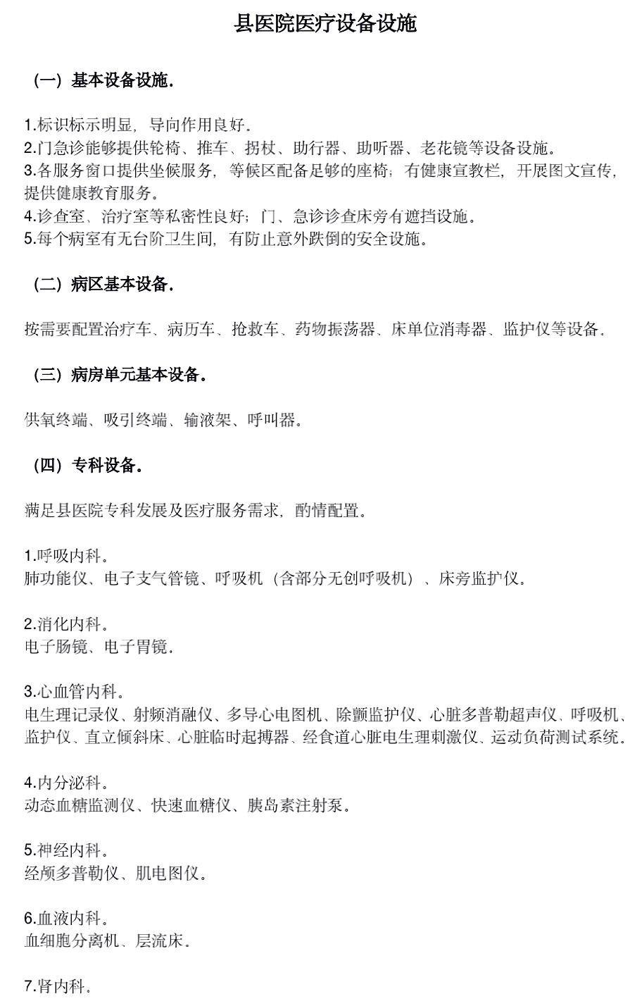 附:《縣醫(yī)院醫(yī)療設(shè)備設(shè)施基本標(biāo)準(zhǔn)》