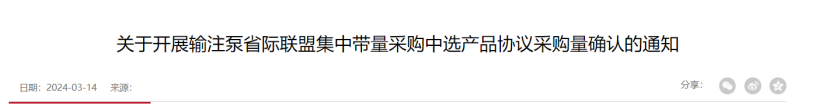 根據《通知》,本次工作依托冠脈血管內超聲診斷導管和輸注泵省際聯盟集中帶量采購系統開展,系統開放時間為2024年3月14日9時—3月27日17時。