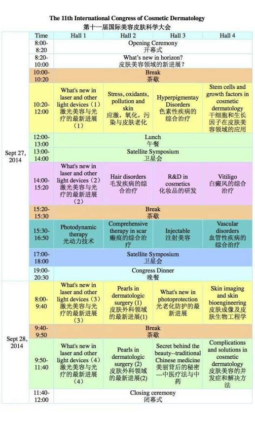 第十一屆國際美容皮膚科學大會日程安排
