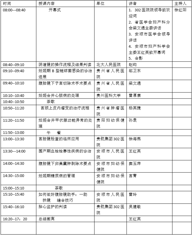 第二屆安順市醫學會婦產科學會會議議程