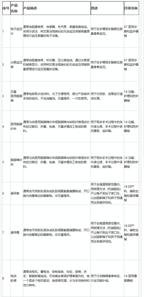 免于經(jīng)營備案的第二類醫(yī)療器械產(chǎn)品目錄