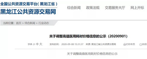 醫藥網9月11日訊 9月8日,黑龍江公共資源交易網發布《關于調整高值醫用耗材價格信息的公示》,公布257種耗材的降價結果。