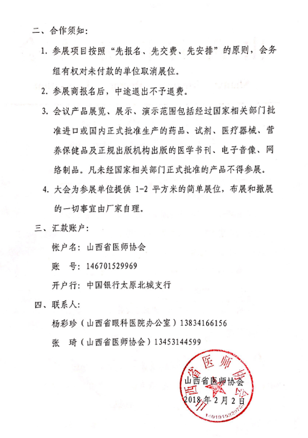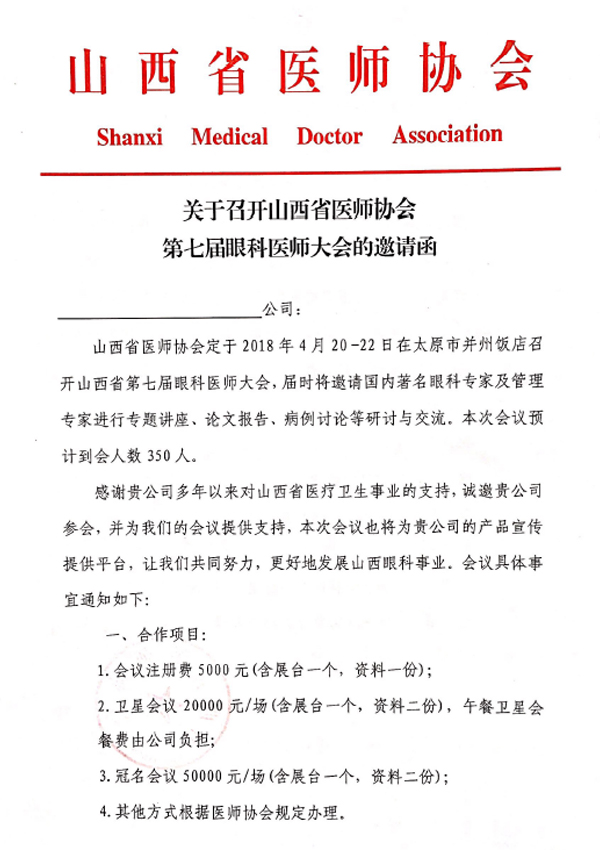 山西省醫師協會第七屆眼科醫師大會邀請函