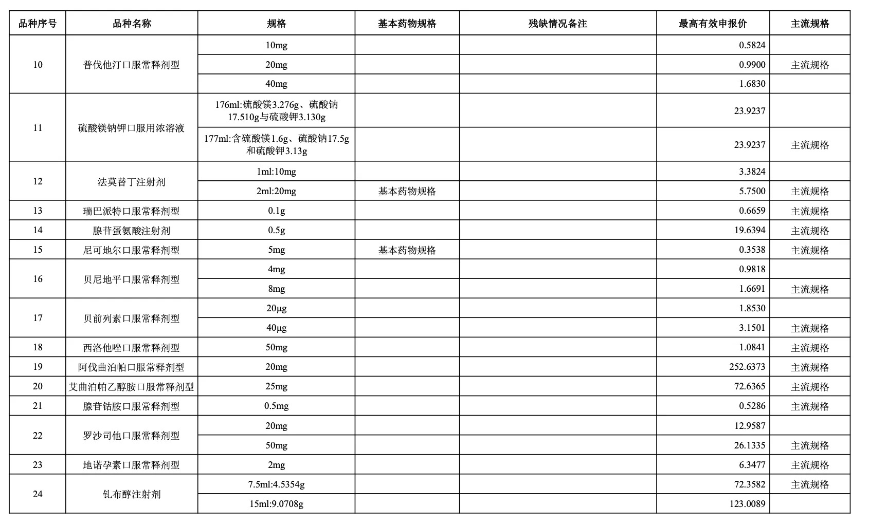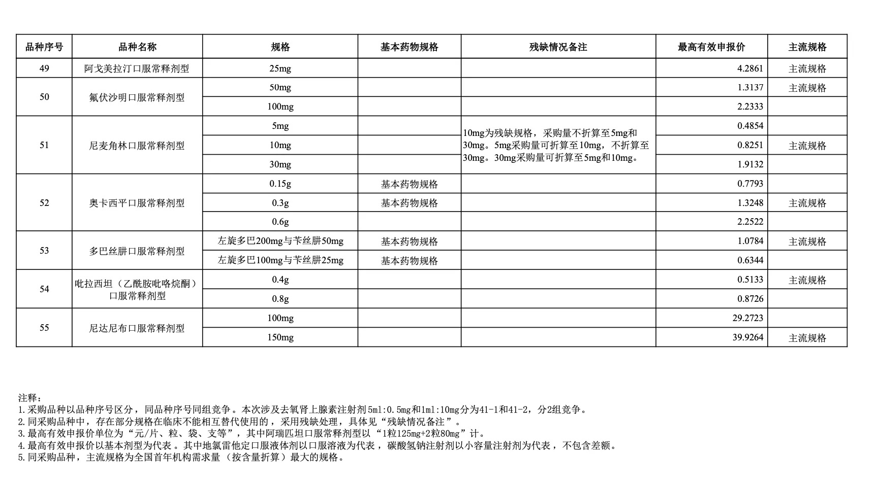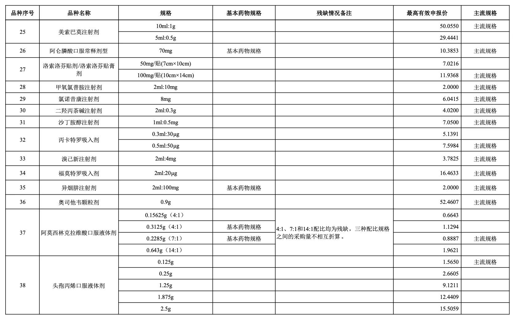 以采購品種范圍內同品種主流規格(即全國首年機構需求量(按含量折算)最大的規格)作為代表規格,參照藥品差比價規則折算至最小計量單位后的價格作為“單位可比價”。按“單位可比價”由低到高確定申報企業順位。“單位可比價”最低的為第一順位,次低的為第二順位,依次類推確定其他順位。