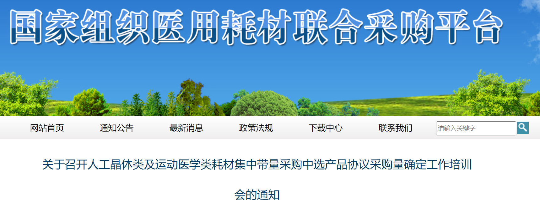 今日(12月19日),人工晶體類及運動醫學類耗材醫療機構采購中選產品協議采購量確定工作培訓會于線上正式召開,第四批國采距離落地執行又近了一步。