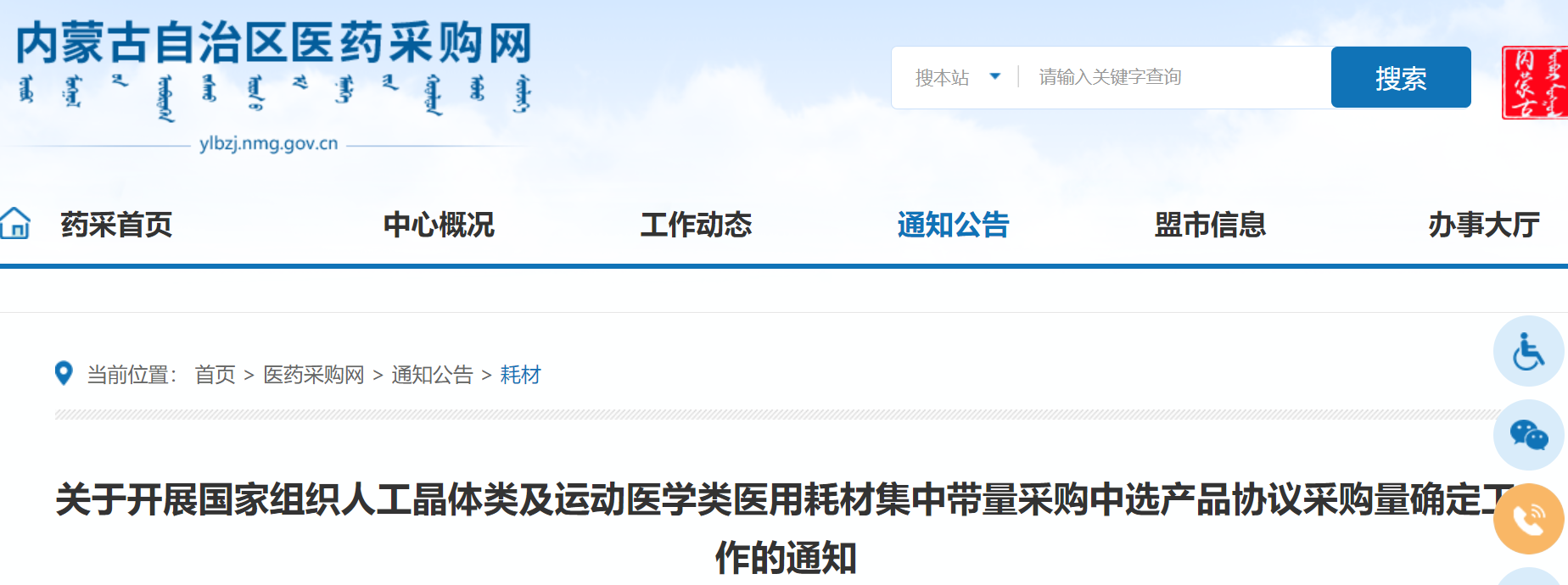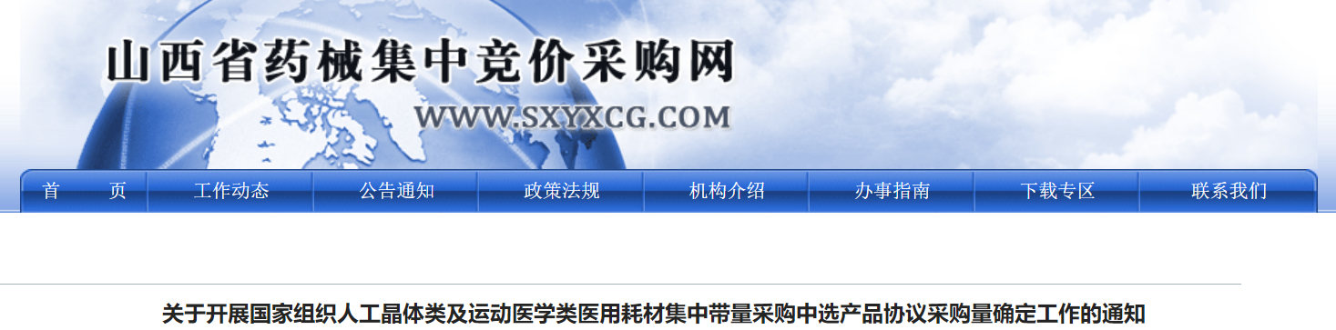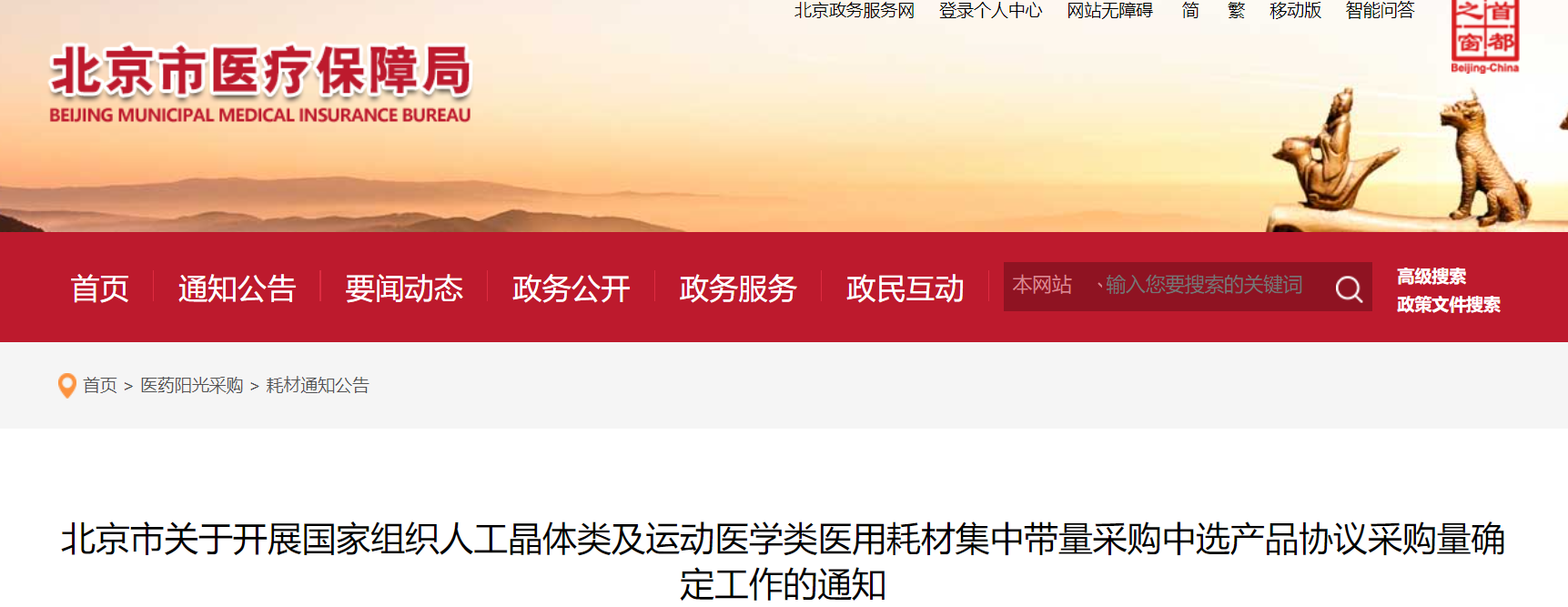 近日,北京、山西、內蒙古等地發布了《開展國家組織人工晶體類及運動醫學類醫用耗材集中帶量采購中選產品協議采購量確定工作的通知》,要求當地醫療機構確定協議采購產品以及采購量。