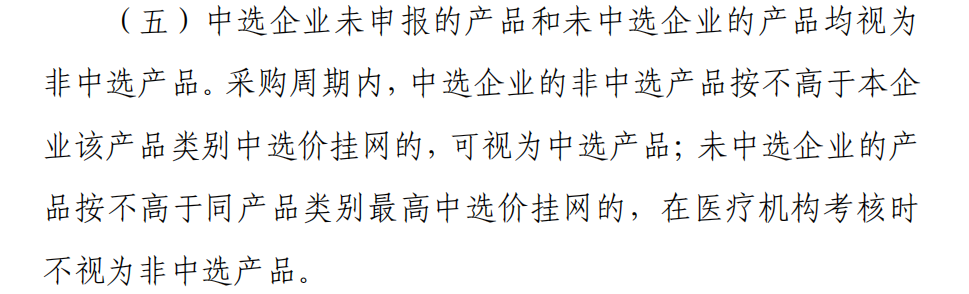 如果是非中選企業新批了一個產品,只要不高于這個同類產品的最高中選價,進院之后醫院使用它也不按照非中選產品來考核。