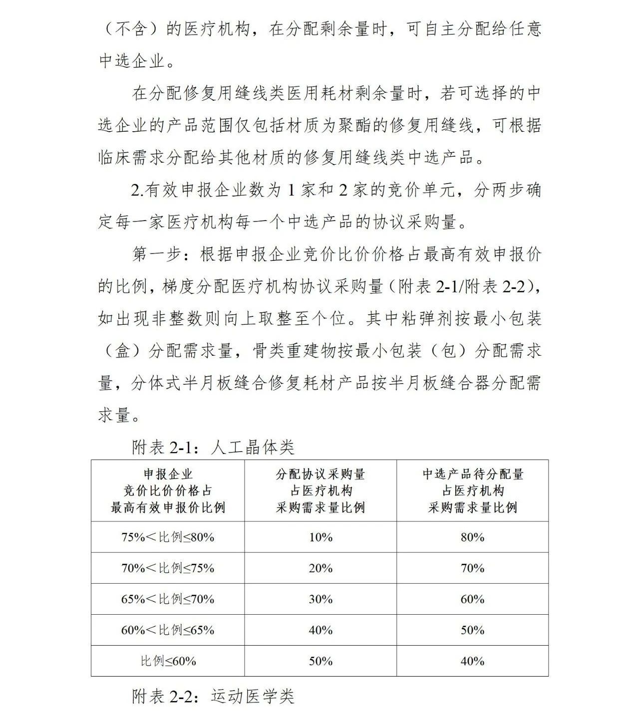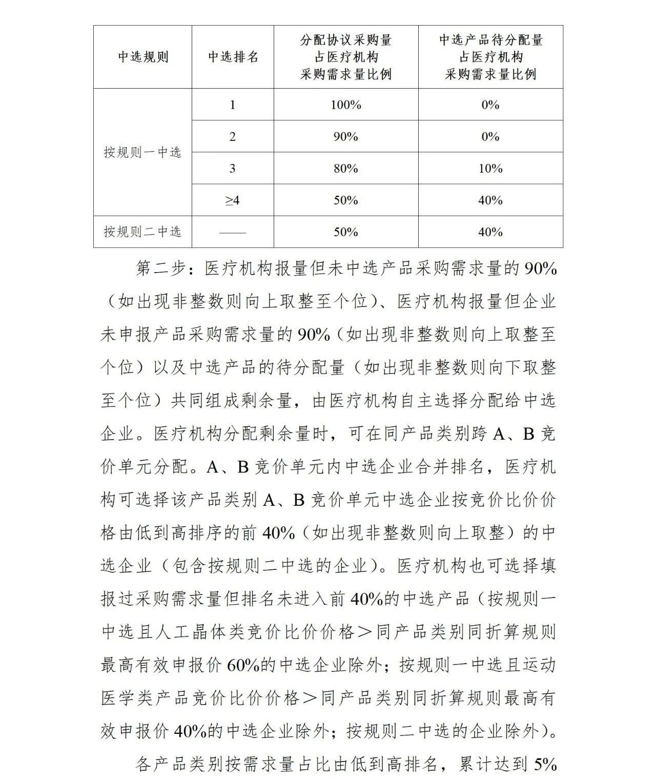 例如,第四批國采設置了“復活機制”,人工晶體降40%、運動醫學降60%即可直接中選,但只能分得50%的采購量,以及40%的待分配量,后者還需再進行價格排名后才有機會獲得。
