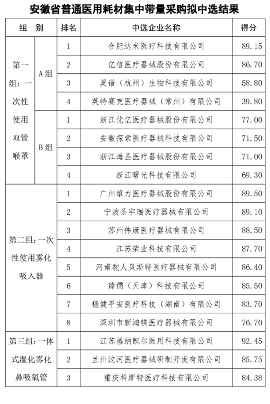 此次集采品類包括一次性使用雙管喉罩、一次性使用霧化吸入器、一體式濕化霧化鼻吸氧管均為臨床用量大、占比金額高、市場競爭充分的普通耗材。