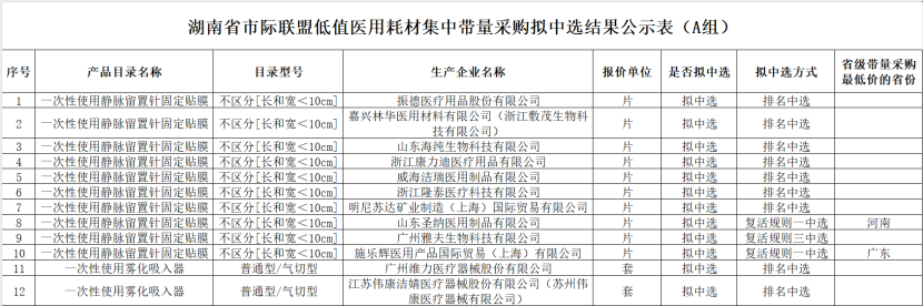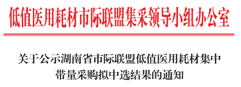 10月20日,湖南株洲聯(lián)盟醫(yī)藥集中限價(jià)采購平臺(tái)發(fā)布《關(guān)于公示湖南省市際聯(lián)盟低值醫(yī)用耗材集中帶量采購擬中選結(jié)果的通知》(附文末)。
